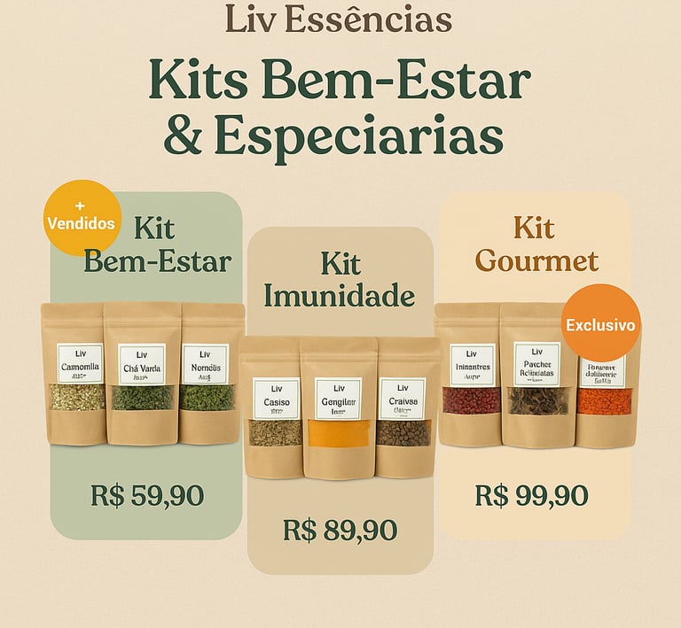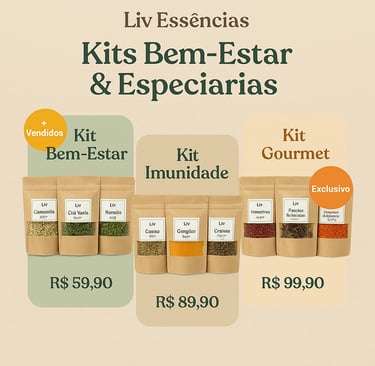 Kit Bem-Estar: Camomila + Chá Verde + Hortelã (R$ 59,90).